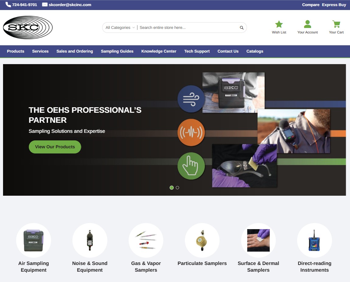 SKC is your partner and comprehensive source for highest quality OEHS sampling solutions and expertise around the world. Wherever you are protecting the health and safety of workers, SKC is there with our accurate, reliable tools that help you assess worker exposure to hazards — air, noise, and surface/dermal — with ease and confidence. Making your job easier through our science and expertise is our passion; serving you with integrity is our pleasure. Connect with us at 724-941-9701 (800-752-8472 US) or visit www.skcinc.com